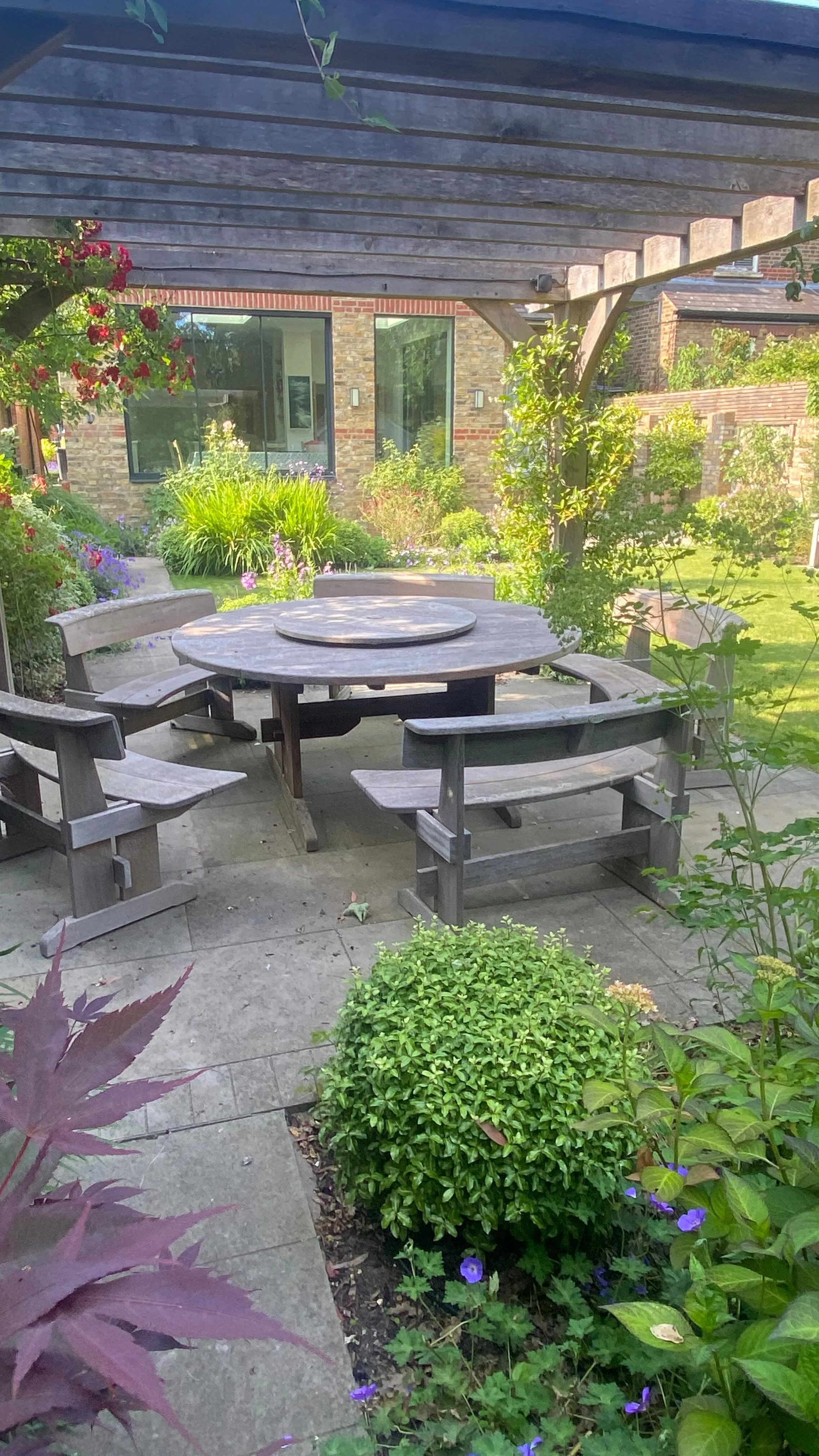 Fine, spacious Ealing garden with classic oak pergola (W5)